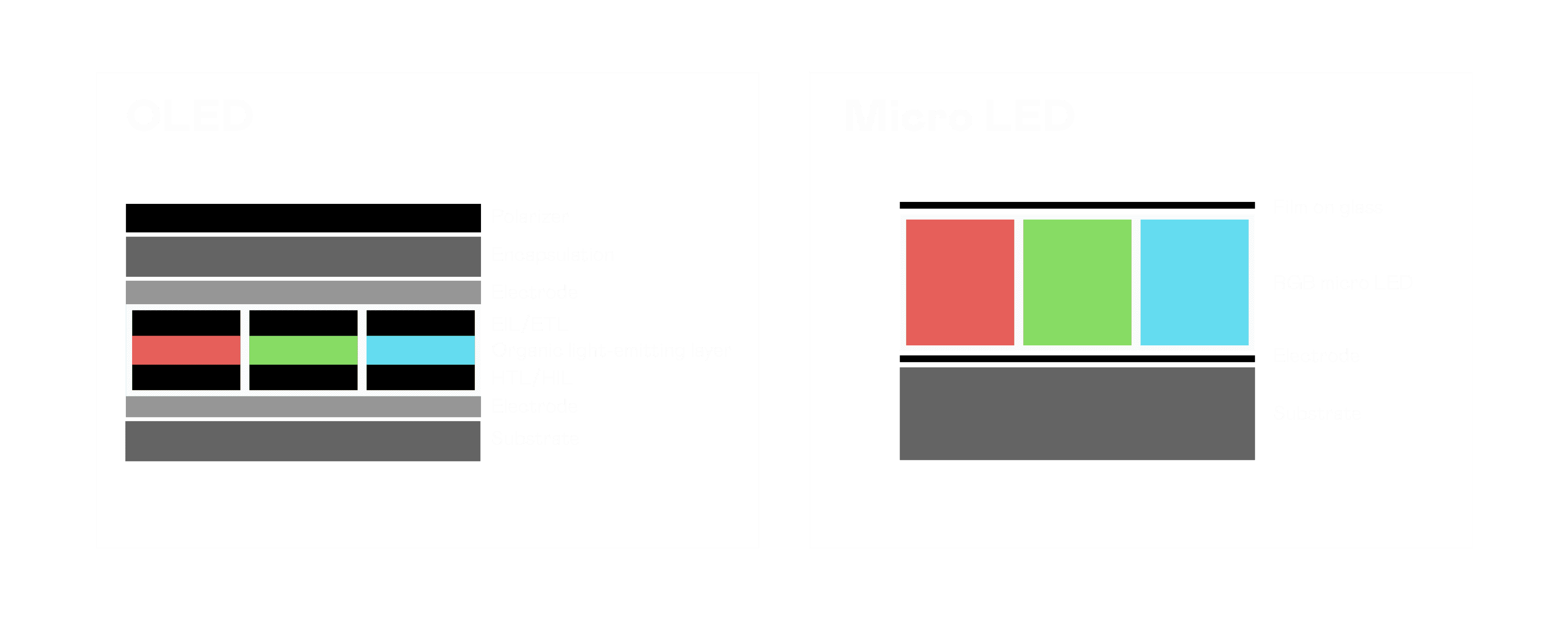 以 LED 做为显示画素,,可让 LED 的发光效率发挥到极致,,从而让显示器具备优异的亮度表现,,不论是在户外或室内,,,均具备出众的显示效果。。。同时,,,与使用有机材料的 OLED 相比,,,LED 具备更稳定、、寿命更长的特性,,,不仅不会有画面烙印问题,,,而且更不容易出现故障、、、、坏点。。。。